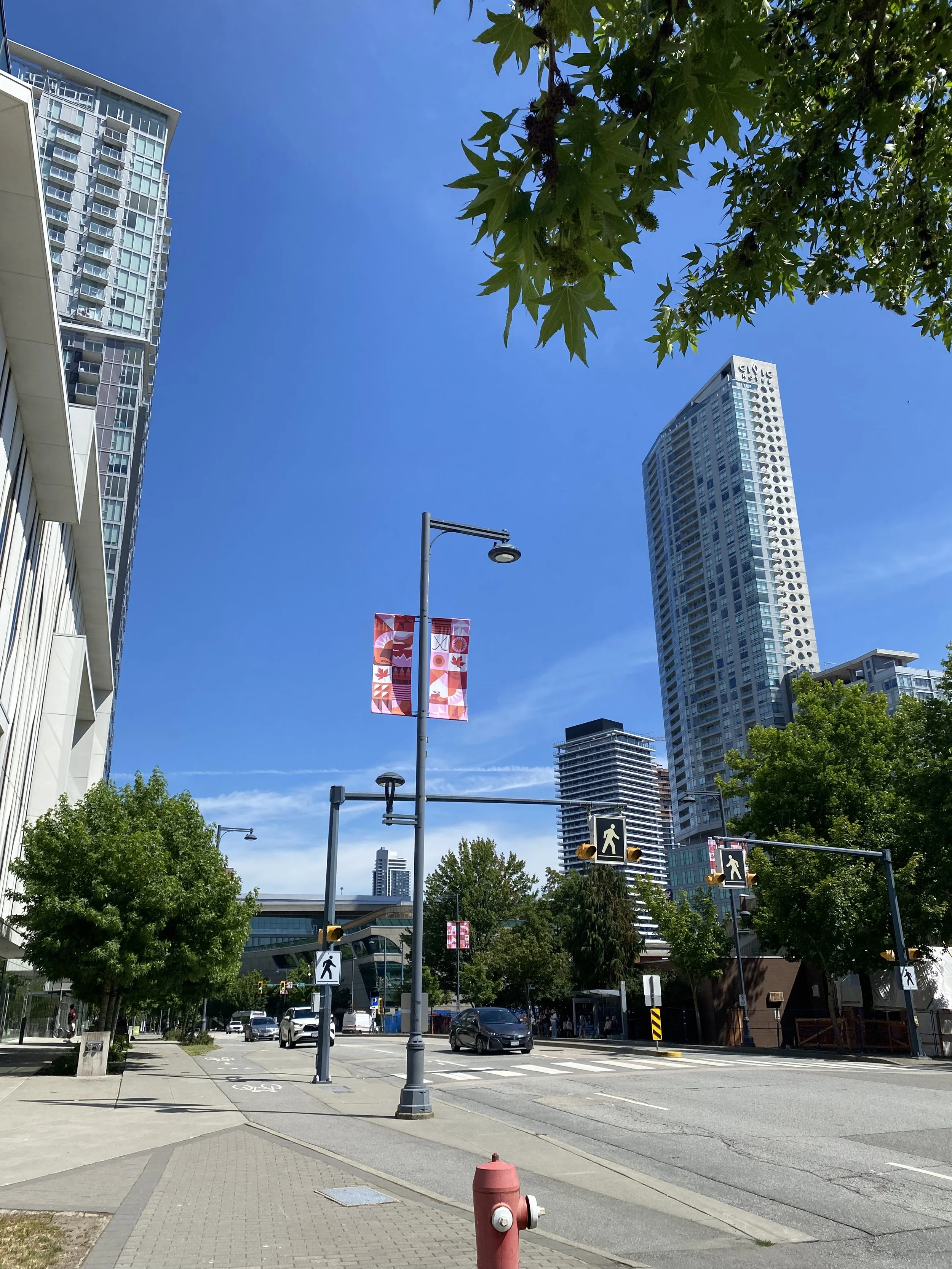 Arty Guava collaborated with artist Angie Coates on the Canada Forward street banner project for the City of Surrey. This vibrant series celebrates diversity, movement, and collective optimism through bold colour and expressive forms. Designed for public streetscapes, the banners reflect a shared vision of inclusivity, creativity, and a hopeful future rooted in community.