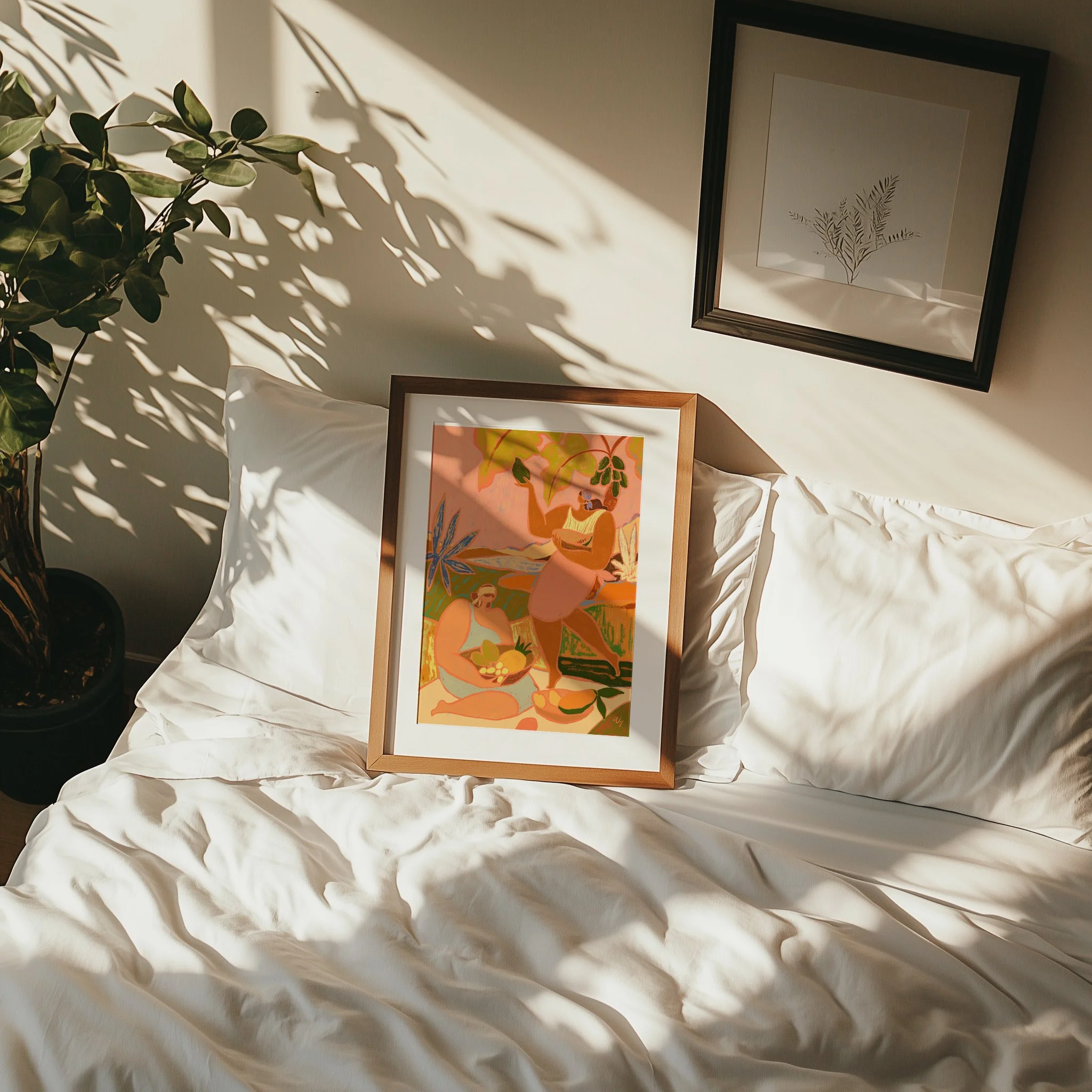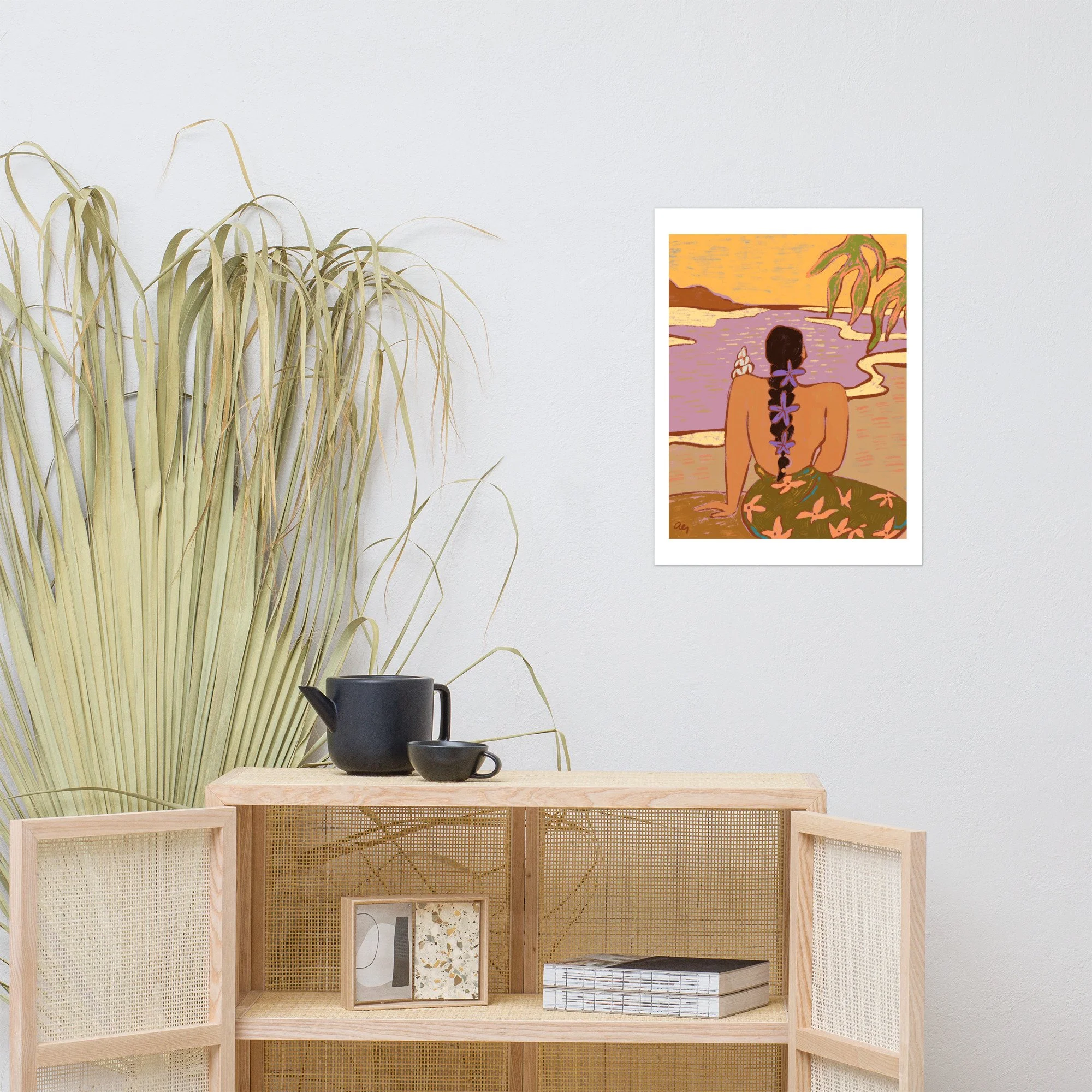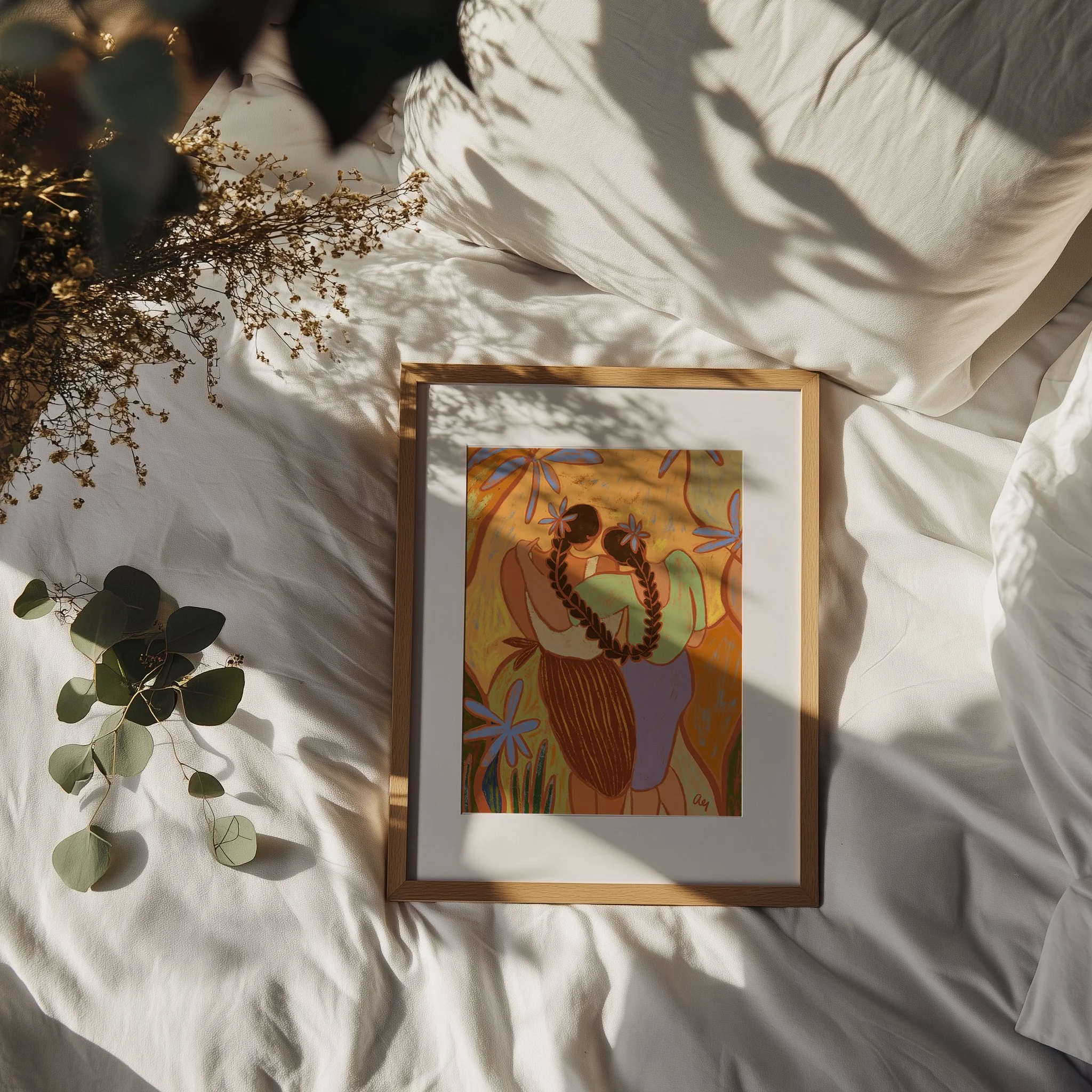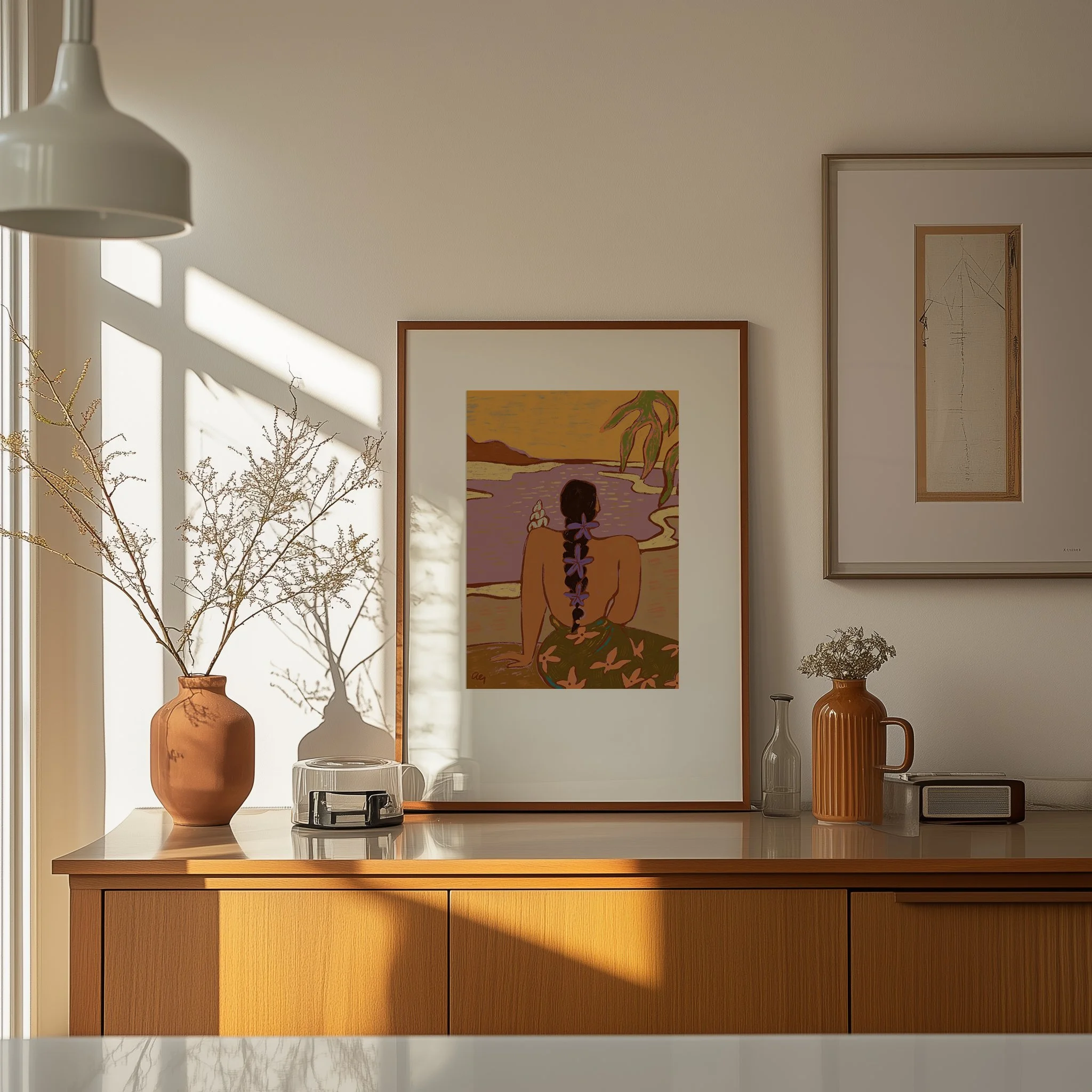 This artwork explores themes of female connection, reflection, intimacy, and nature’s quiet beauty, evoking a sense of timeless companionship and peace. Perfect for those drawn to coastal serenity, golden sunsets, and soulful storytelling through art.