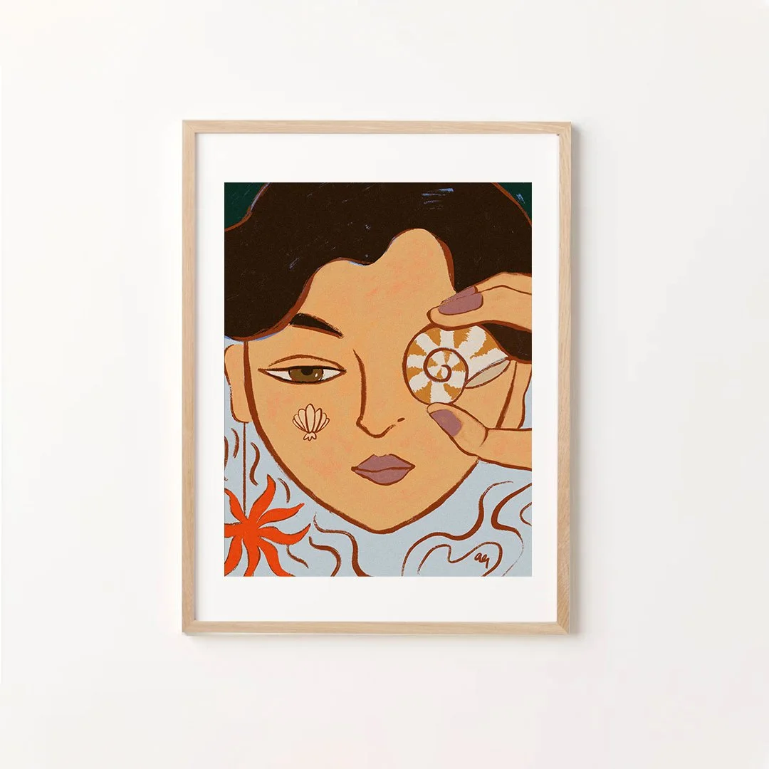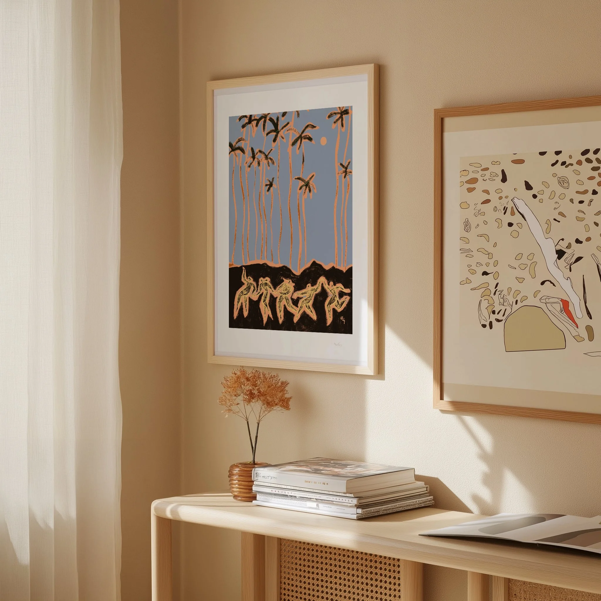 Through her signature blend of tropical hues, fluid forms, and emotive storytelling, Arty Guava transforms an everyday scene into a meditation on balance and presence. The ripe fruits — papaya, banana, and citrus — glow with life, while the stillness of the figure anchors the composition in serenity.