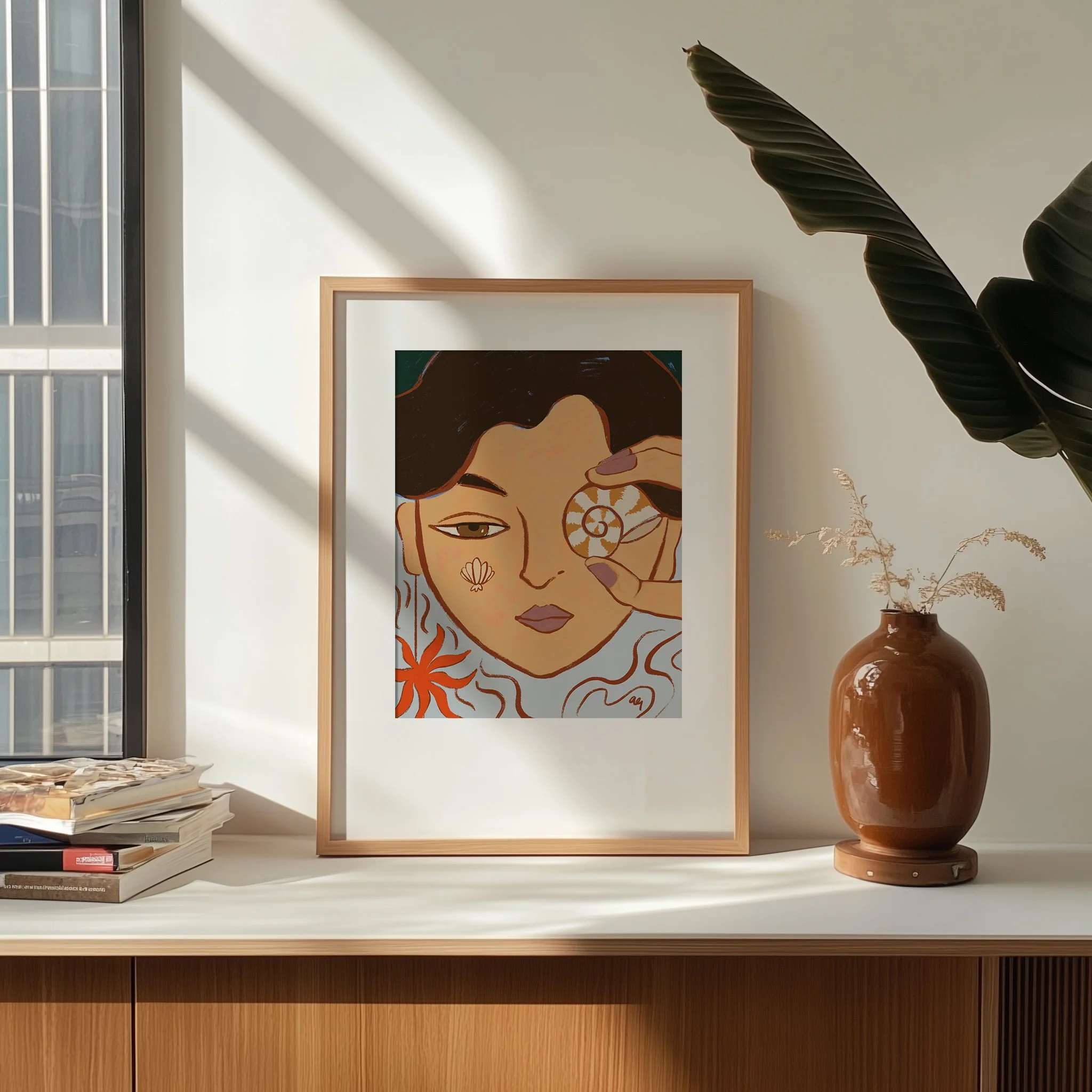 “The Sweetness of Enough” by Arty Guava invites viewers into a moment of quiet reflection and tropical abundance. Set against the vibrant backdrop of a fruit stall brimming with color, a woman stands with an empty basket — a poetic symbol of fulfillment and gratitude. This artwork speaks to the art of contentment, reminding us that happiness often lives not in accumulation, but in appreciation for what already surrounds us.